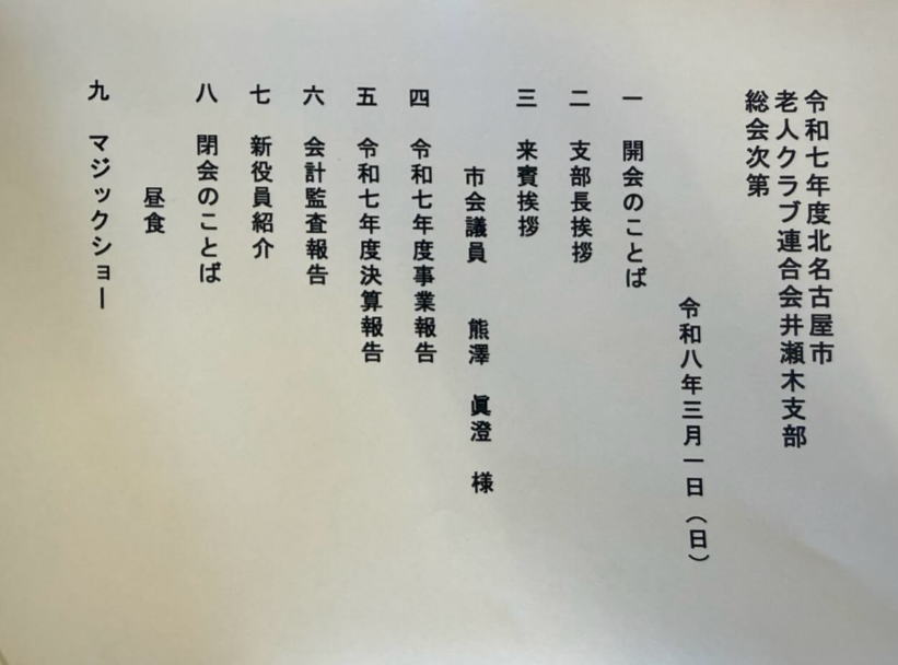 老人クラブ連合会井瀬木支部総会に出席しました